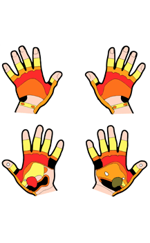 oben: Sensible Versorgung der Hand, abhängig von den